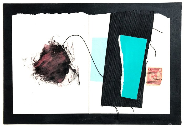 Previous Next Post Small Collage Series: #13 6″x 9″ Cold wax, fabric, collage on matboard Share this: Click to share on X (Opens in new window) X Click to share on Facebook (Opens in new window) Facebook Like Loading... Permalink Filed under: 2021