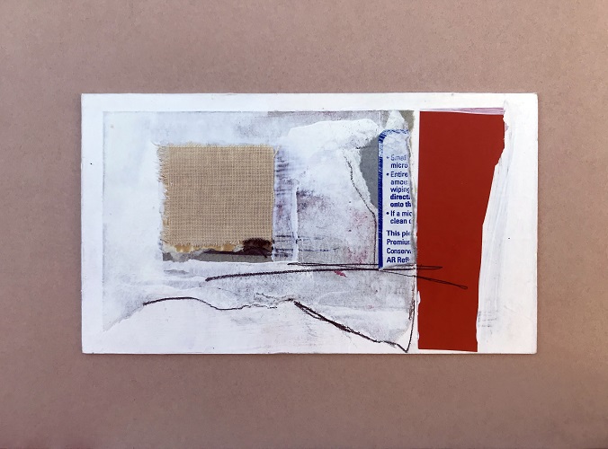 Previous Next Post Small Collage Series: #26 5″x 8″ Acrylic, spackling paste, fabric, collage on matboard Share this: Click to share on X (Opens in new window) X Click to share on Facebook (Opens in new window) Facebook Like Loading... Permalink Filed under: 2021